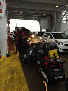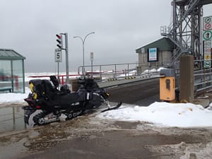 Isle-aux-Coudres en motoneige : À partir du sentier motoneige, vous embarquez sur le traversier reliant Saint-Joseph-de-la-Rive à l’Isle-aux-Coudres. Le bateau navigue à travers la banquise fragmentée, vous donne un spectacle et une sensation unique. Une fois sur l’île, les sentiers vous permettent de traverser les vergers, les terres agricoles et d’apercevoir le massif de Charlevoix. On observe les glaces qui dérivent à perte de vue, tout en sillonnant les rives du Saint-Laurent. Des hébergements sont proposés aux motoneigistes pour une soirée agréable et conviviale sur l’île.